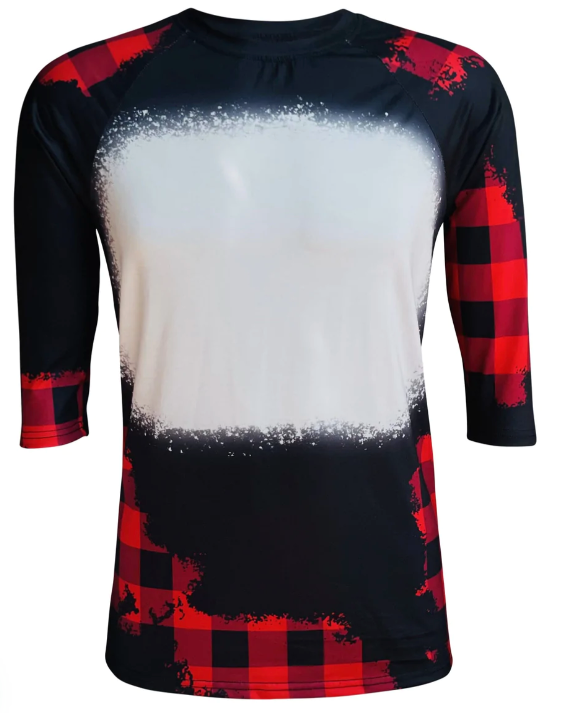 Buffalo Plaid Black Christmas Faux Bleached Raglan
