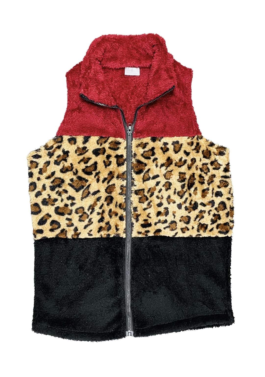 Color Block Vest- Cheetah/Burgundy
