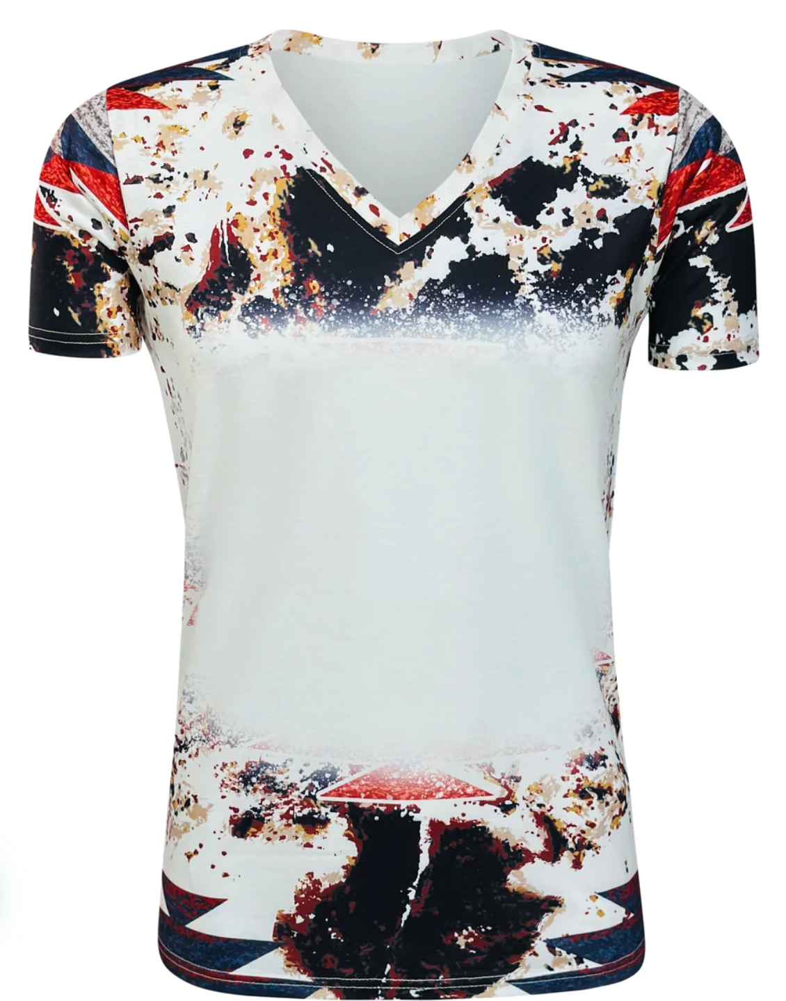 Cow Aztec Blank Faux Bleached Top- V Neck