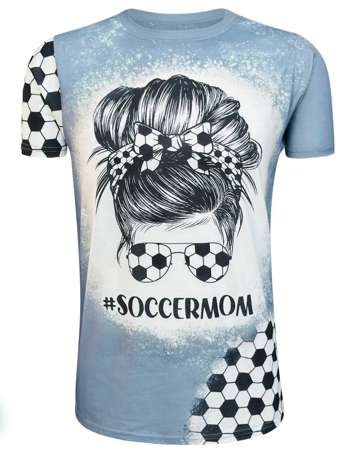- FAUX Bleached Polyester Soccer Blue Sublimation Shirt | Mom Bun Soccer Bleached Shirts | Soccer T-Shirt